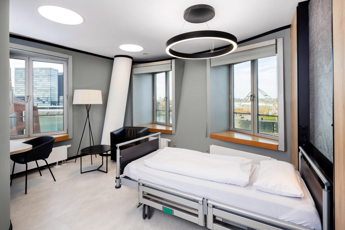 The transformation of a medical practice into a clinic in Düsseldorf’s Media Harbor resulted in an extraordinary project: a highly functional clinic building with two daylight operating rooms in the landmark ensemble of the famous Gehry buildings.