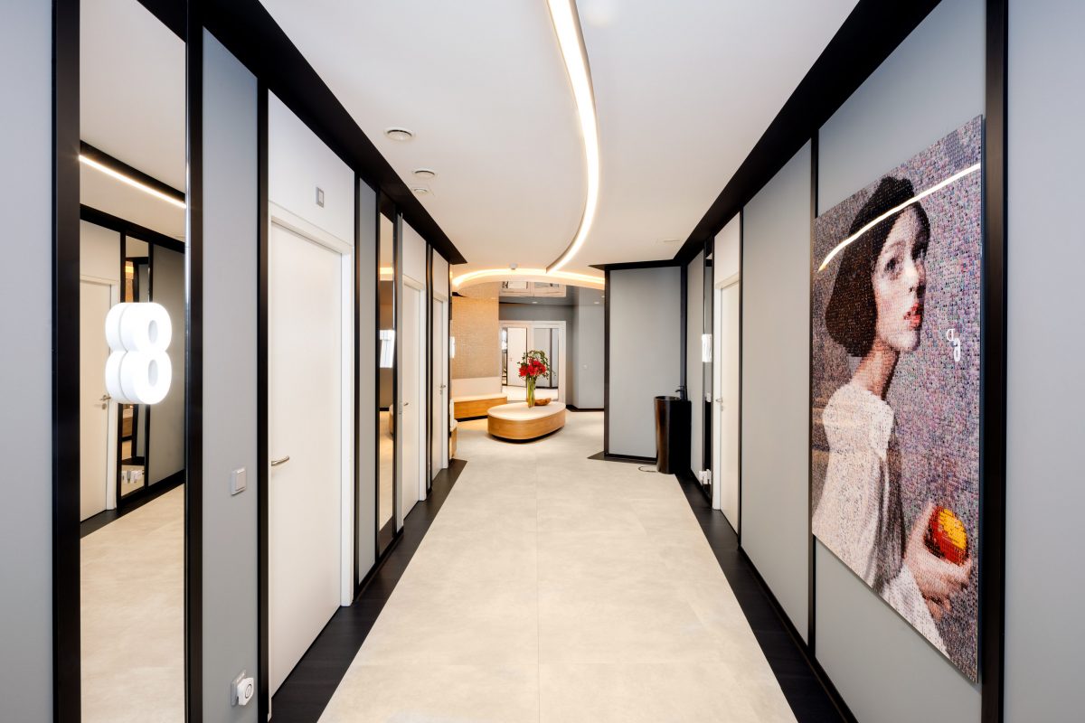 Der OP-Bereich der Plastmed Privatklinik vermittelt durch helle, klare Architektur und ruhige Farben ein Gefühl von Sicherheit und Gelassenheit. Die aufgeräumte Gestaltung und das harmonische Zusammenspiel von Licht, Raum und moderner Technik nehmen Ängste und unterstreichen zugleich höchste hygienische und sterile Standards.