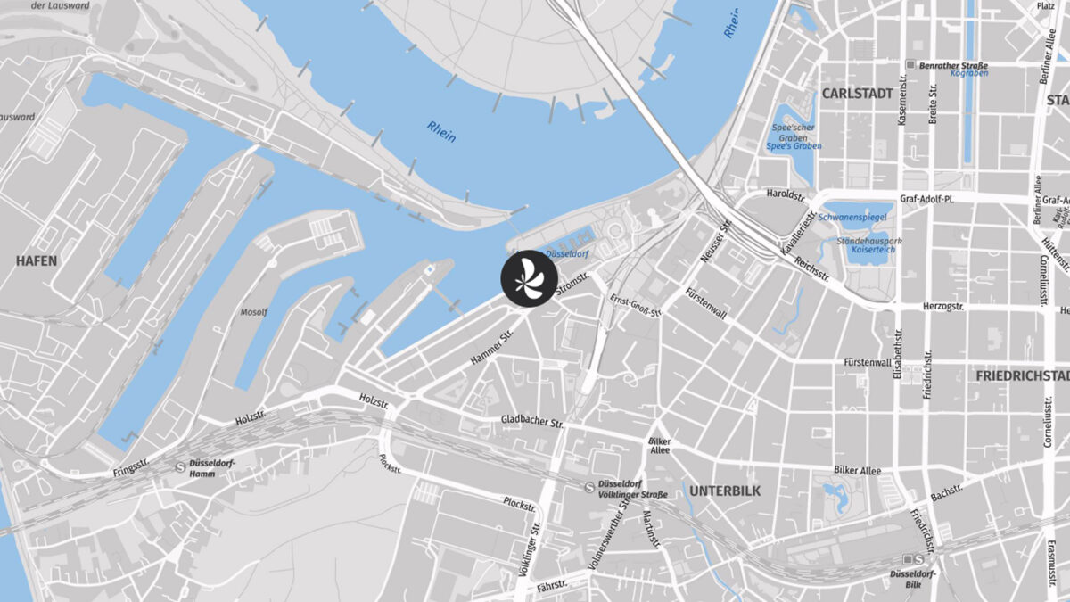 Unsere Klinik liegt im Herzen des Düsseldorfer Medienhafens und ist sowohl mit dem Auto als auch mit der Bahn sowie vom Flughafen Düsseldorf (DUS) komfortabel zu erreichen.